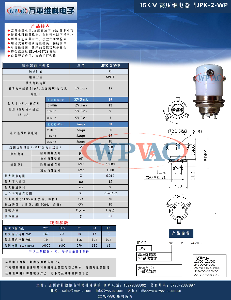 JPK-8-SF型真空继电器(DC15KV,热切换)